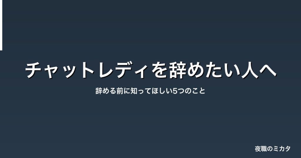 夜職を辞めたい人におすすめの選択肢7つ【在宅・昼職・チャトレ比較】