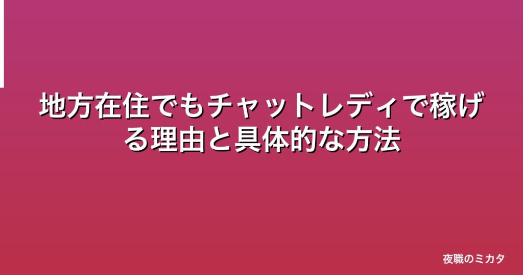 地方在住でもチャットレディで稼げる理由と具体的な方法