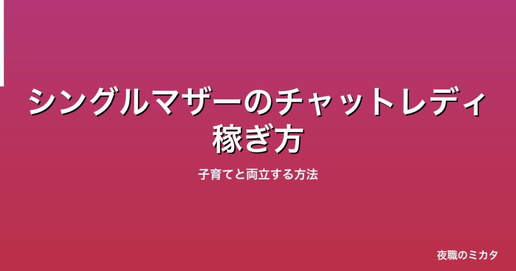 シングルマザーにチャットレディが合う理由 - 在宅で子供のそばにいられる - 夜間保育不要(子供が寝た後に配信) - シフトなし。子供の体調不良にも対応可能 - 収入に上限がない --- おすすめの配信時間帯 | 時間帯 | 状況 | おすすめ度 | |--------|----... -