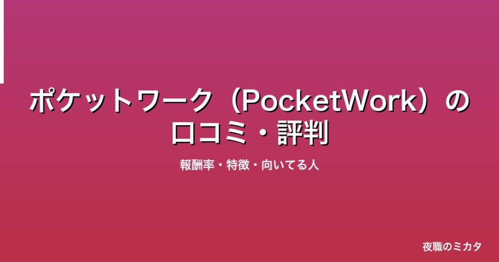 ポケットワーク(PocketWork)の口コミ・評判|報酬率・特徴・向いてる人