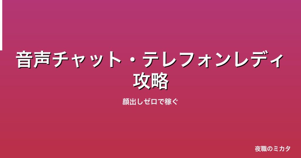 音声チャット・テレフォンレディ攻略の基本知識 この記事では「音声チャット・テレフォンレディ攻略」について、チャットレディとして活動する際に知っておくべき情報を網羅的に解説します。チャットレディは在宅で24時間好きな時間に働ける仕事で、報酬率... -
