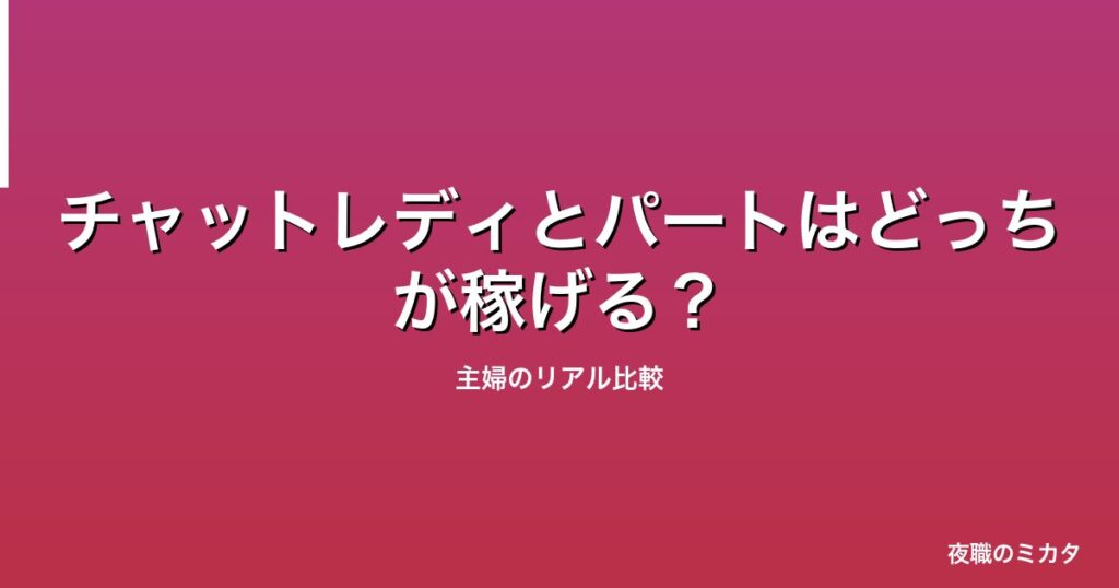 チャットレディとパートはどっちが稼げる?|主婦のリアル比較