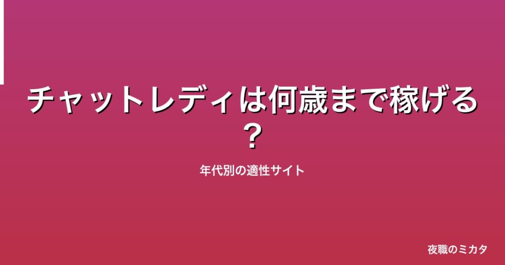 何歳まで稼げる?の基本知識 この記事では「何歳まで稼げる?」について、チャットレディとして活動する際に知っておくべき情報を網羅的に解説します。チャットレディは在宅で24時間好きな時間に働ける仕事で、報酬率は国内サイト(FANZAライブ50%固定、ラ...