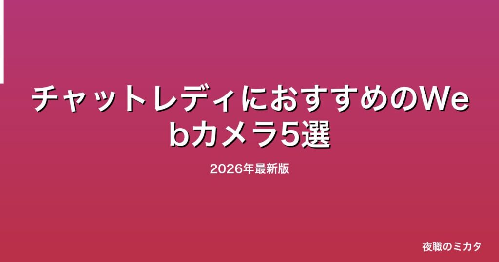におすすめのWebカメラ5選の基本知識 この記事では「におすすめのWebカメラ5選」について、チャットレディとして活動する際に知っておくべき情報を網羅的に解説します。チャットレディは在宅で24時間好きな時間に働ける仕事で、報酬率は国内サイト(FANZA... -
