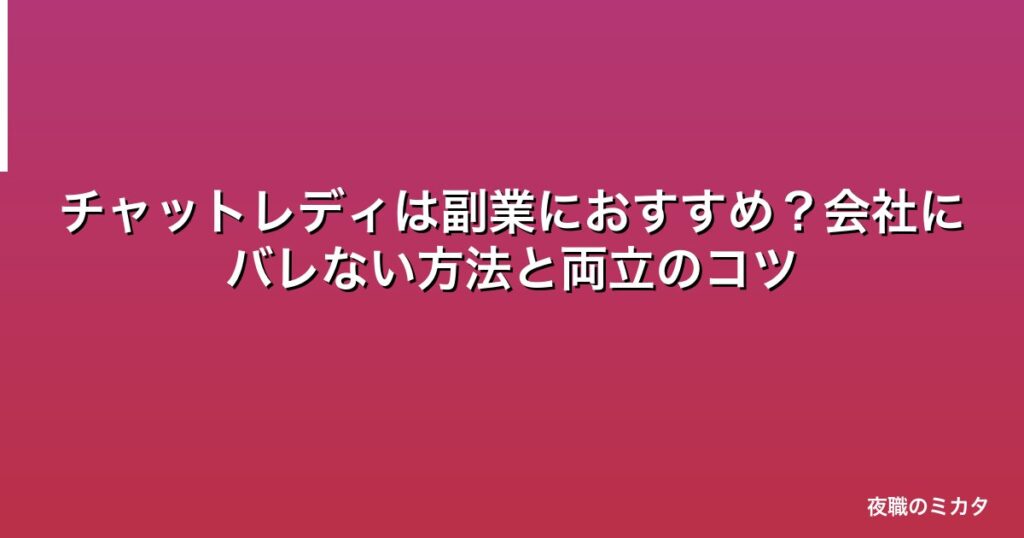 チャットレディは副業におすすめ?会社にバレない方法と両立のコツ