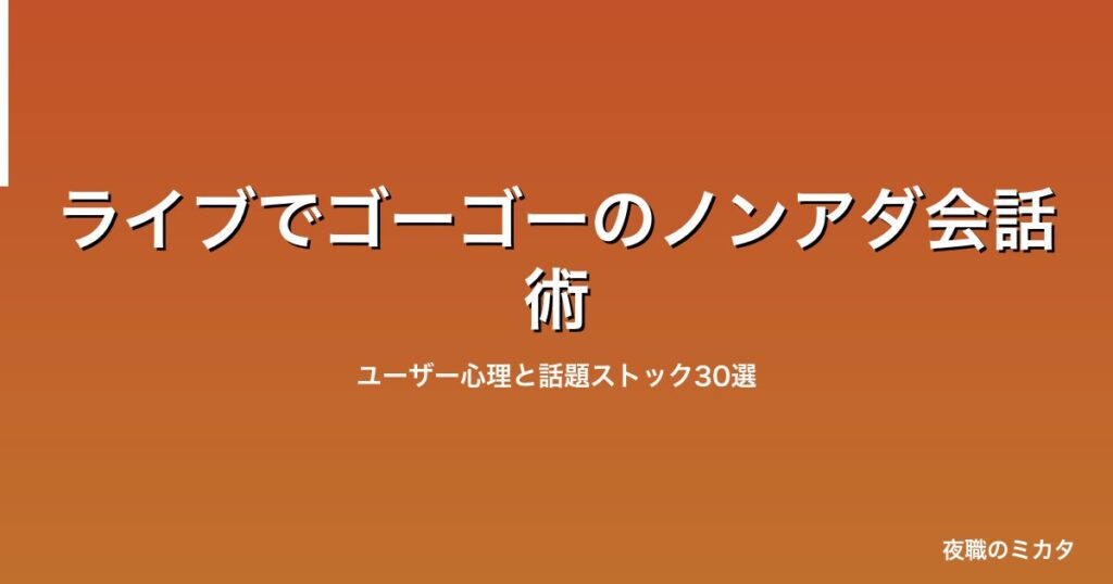 ライブでゴーゴーのノンアダ会話術|ユーザー心理と話題ストック30選