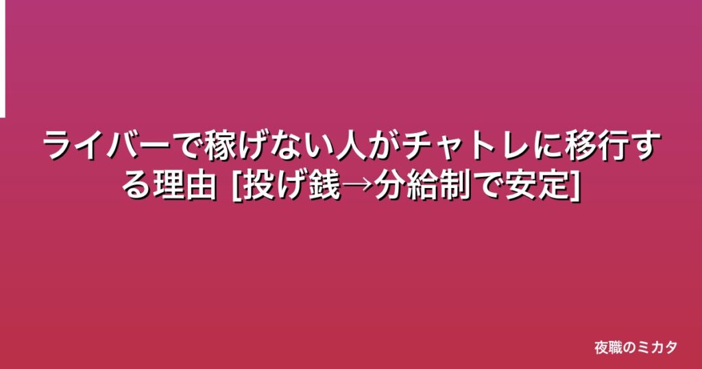ライバーで稼げない人がチャトレに移行する理由【投げ銭→分給制で安定】