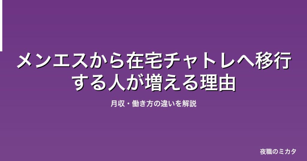 メンエスから在宅チャトレへ移行する人が増える理由|月収・働き方の違いを解説