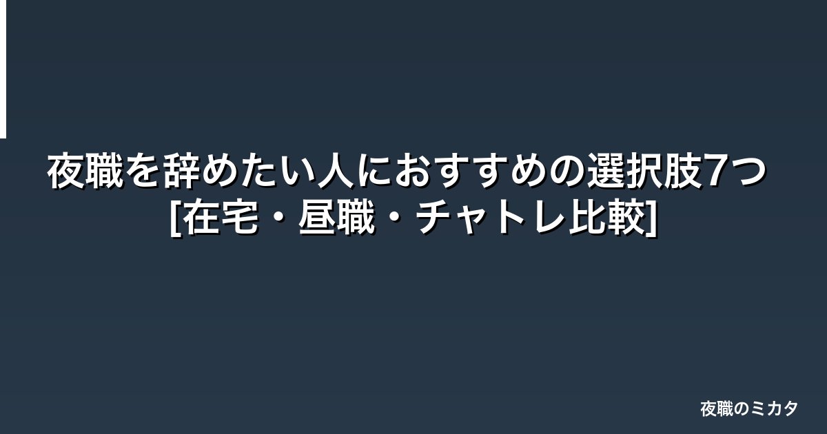 夜職を辞めたい人におすすめの選択肢7つ【在宅・昼職・チャトレ比較】